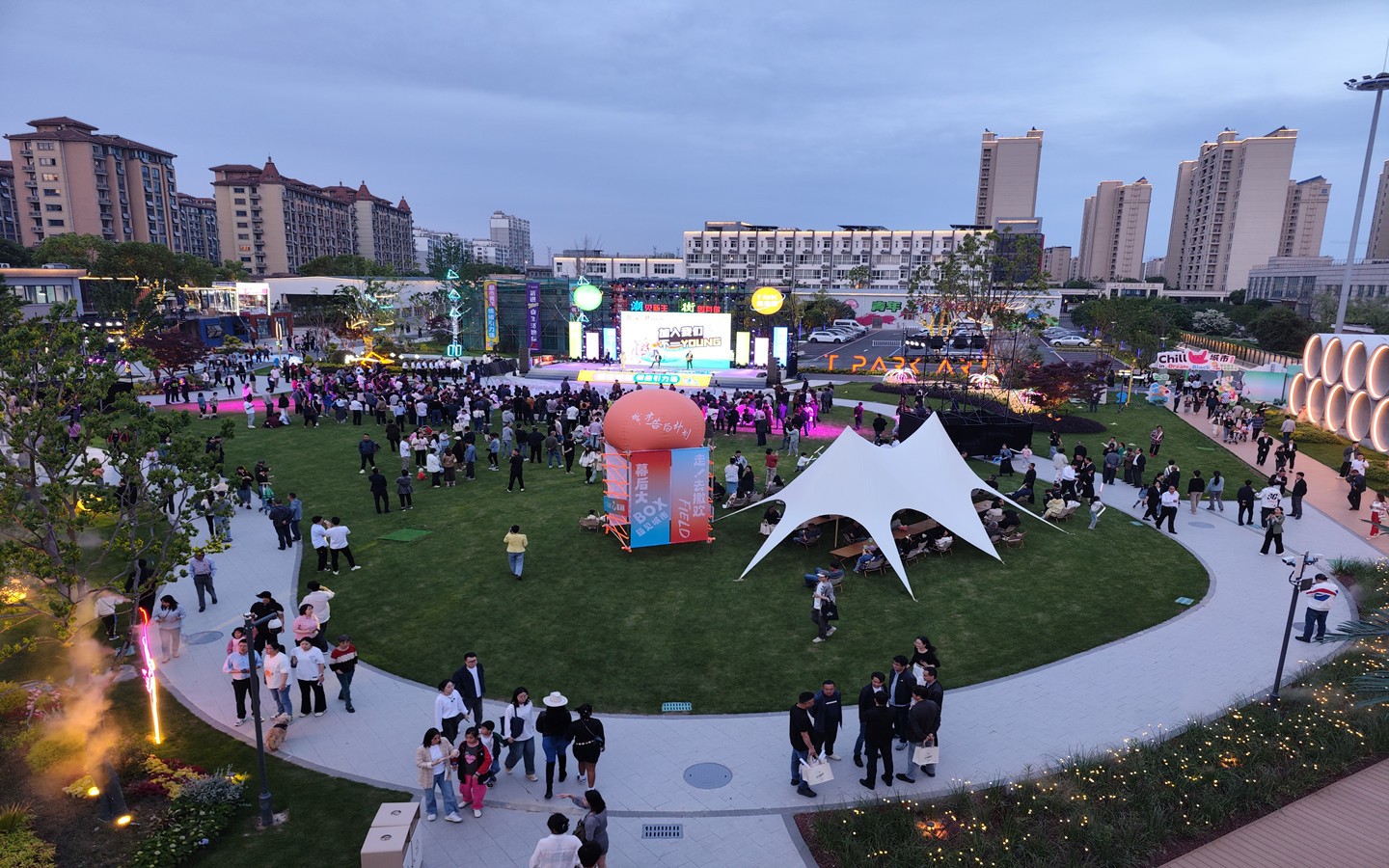 開放街區(qū),24小時(shí)嗨玩勝地。主打開放式城市公園風(fēng)格,街區(qū)設(shè)計(jì)了6個(gè)人行出入口、小橋流水式步道、開闊的自然空間以及各式樓頂觀景休閑露臺(tái),開放、共享的元素打造將成為時(shí)尚一族City walk的新去處,漫步園內(nèi),似有“身處鬧市中,行走在自然里”的超然之感。城市微度假的特色,將城市公園與多巴胺集裝箱結(jié)合,60多個(gè)顏色造型業(yè)態(tài)各不相同的集裝箱、巴士、蘑菇屋、蛋屋,2000㎡林下空間,夏威夷等多式情調(diào)風(fēng)格,既是精致的煙火美食休閑之所,也是拍客打卡出片勝地。街區(qū)一步一景,將汽車、“海豚少年”Timmo、“我愛常州”等元素融入街區(qū)。街區(qū)全區(qū)燈光亮化,白天這里是城市繁忙的一隅,讓你感受城市公園的放松。夜晚,華燈初上,這里是24小時(shí)不打烊的嗨場,龍城夜未央的精彩在這里盡數(shù)體現(xiàn)。街區(qū)將不定期舉辦草坪音樂節(jié)、演說會(huì)等活動(dòng),積極為常州“青春樂都”添磚加瓦,也會(huì)舉辦藝術(shù)類市集、戶外主題沙龍、團(tuán)建拓展等文化活動(dòng)。