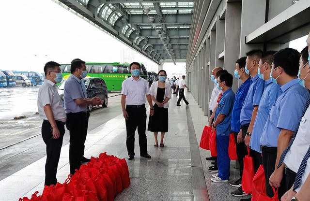 8月12日上午,市交通運輸局領(lǐng)導(dǎo)薛曄、曹建中一行至常州汽車總站,向高溫下堅守防疫一線的工作人員進行慰問。集團公司董事長兼總經(jīng)理謝星,黨委負責(zé)人、紀(jì)委書記兼工會主席王連保等陪同。