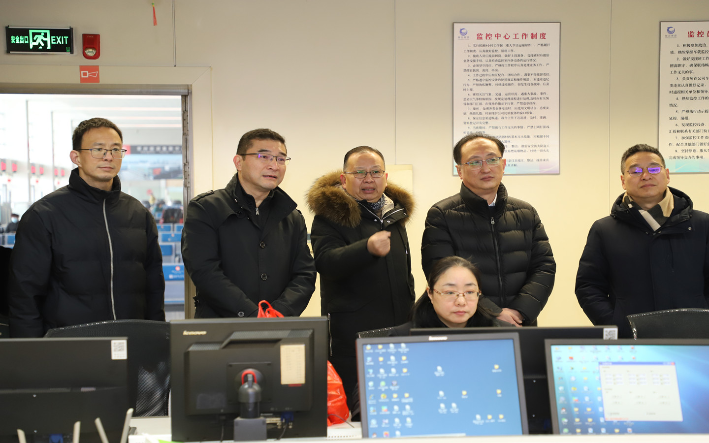 局領(lǐng)導(dǎo)一行代表市局對車站服務(wù)臺、售檢票窗口、監(jiān)控中心、調(diào)度室等地進(jìn)行走訪,對堅守崗位的職工進(jìn)行慰問并送上慰問品。朱平春介紹了公司春運(yùn)期間的運(yùn)力組織、服務(wù)保障及安全管理情況。局領(lǐng)導(dǎo)表示節(jié)假日期間要加強(qiáng)車輛及駕駛員的現(xiàn)場管理,保證行車安全,同時要不斷提升服務(wù)質(zhì)量,提供溫馨的乘車環(huán)境,確保旅客能夠順利返鄉(xiāng)。